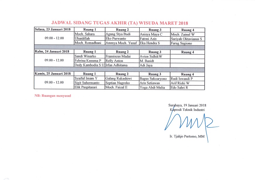 JADWAL SIDANG TA PRODI TEKNIK INDUSTRI GASAL 2017/2018